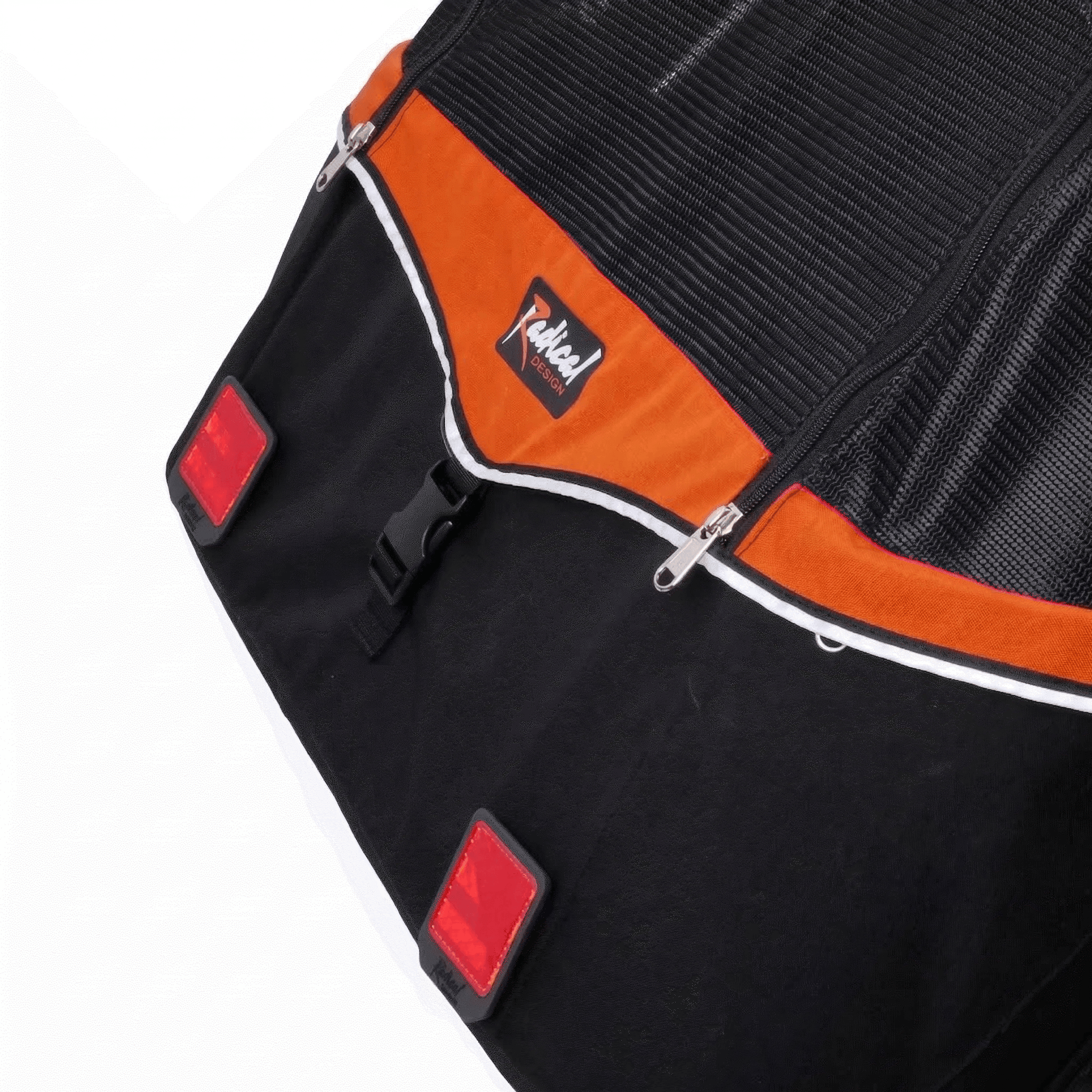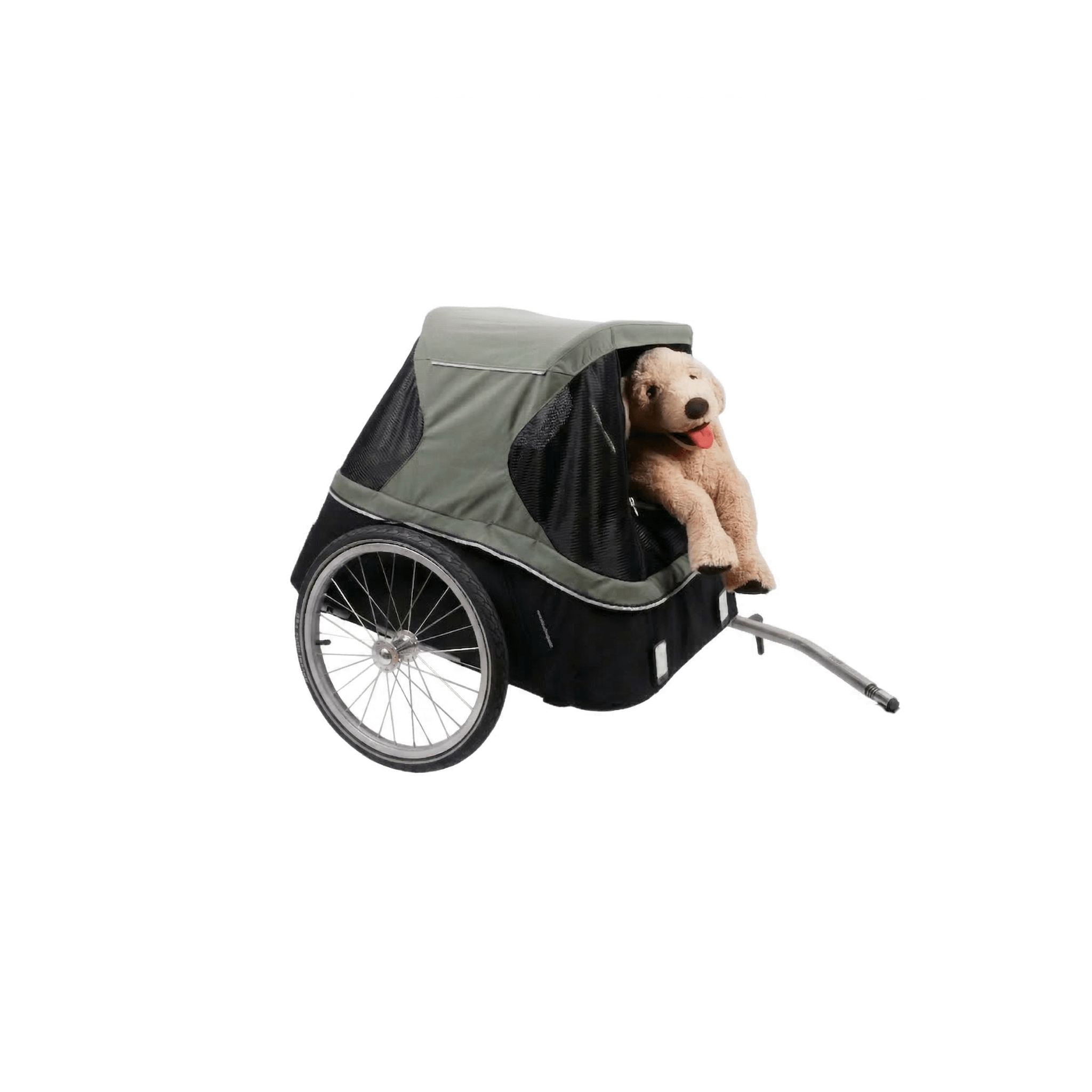 Qu'est-ce qui rend la Cyclone Remorque pour Chien si spéciale ? Elle est compacte, pliable (se glisse facilement sous votre lit une fois pliée) et dispose d'une entrée basse pour votre compagnon à quatre pattes. Utilisez-la également comme cage (également pour la voiture), avec une laisse fournie pour attacher votre chien. La ventilation est possible à l'avant et à l'arrière, et pour une visibilité accrue de jour comme de nuit, des réflecteurs, des passepoils réfléchissants et un support de lampe sont ajoutés. Un coussin amovible pour chien est disponible en option.