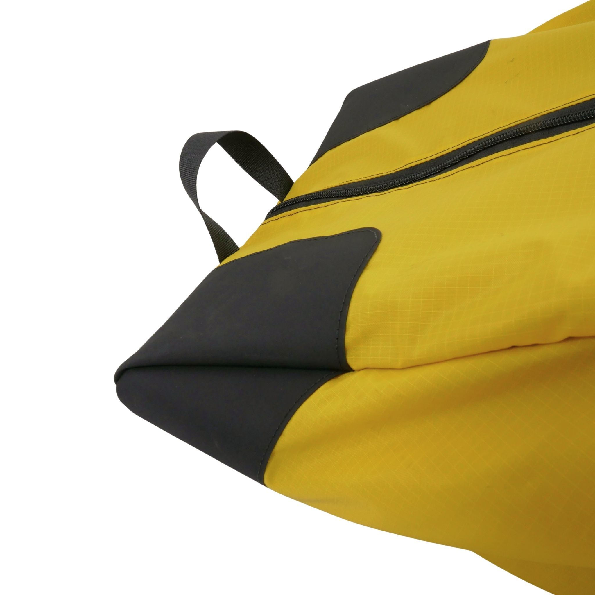 Des renforts en Hypalon placés aux coins offrent une protection ciblée contre l’abrasion et les chocs aux points de contact critiques. Lors du processus de conception, une attention particulière a été portée à l’équilibre optimal entre protection et poids ajouté, afin d’assurer une protection efficace du Wheelie sans encombrement inutile. Pour une sécurité supplémentaire, les utilisateurs peuvent toujours ajouter des matériaux de protection supplémentaires à l’intérieur de la housse en fonction de leurs besoins de voyage.