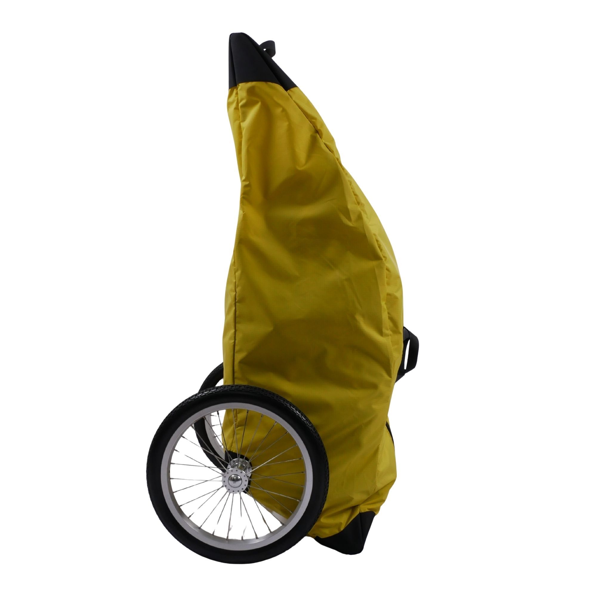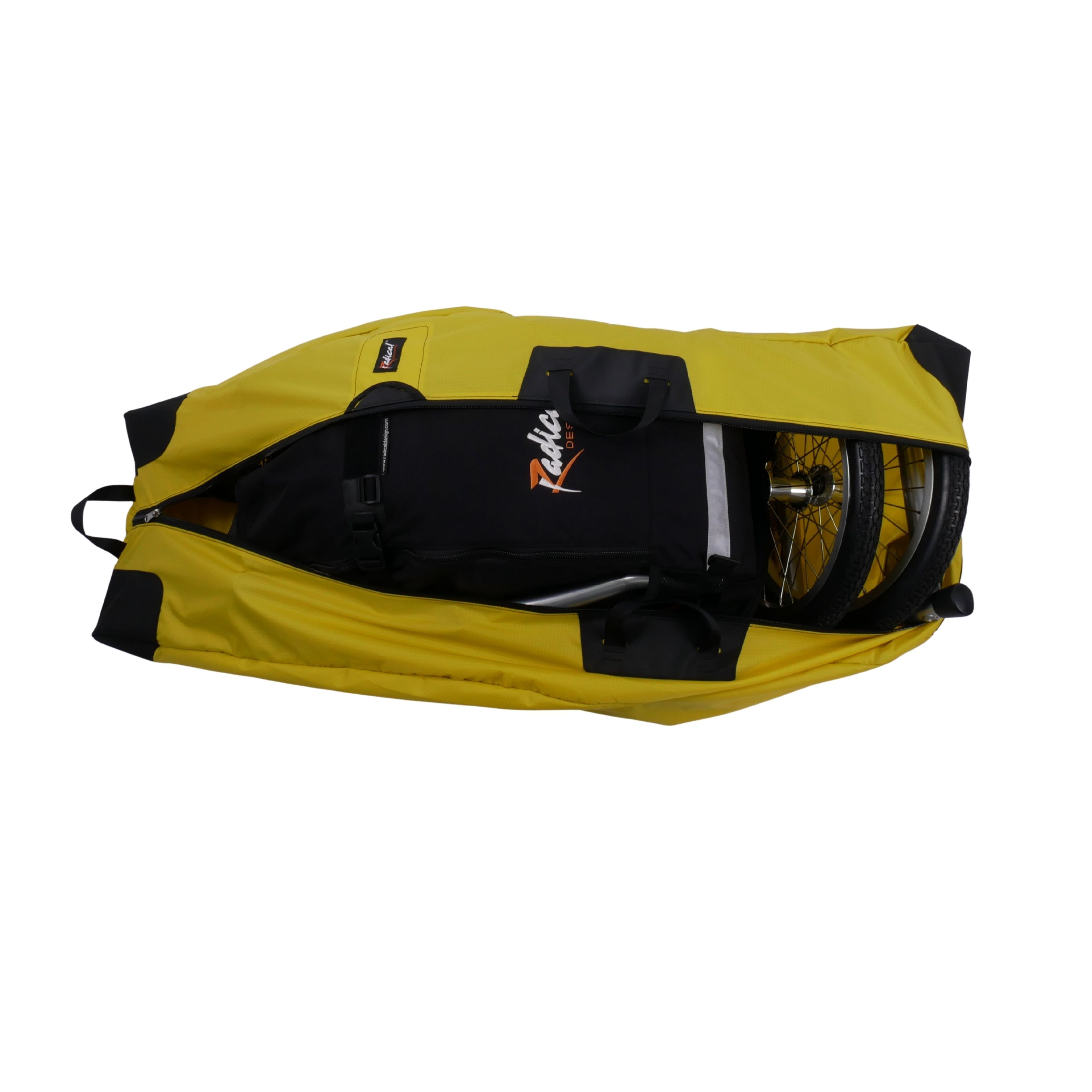 La housse de transport Wheelie Flight Cover est conçue pour protéger et transporter votre Wheelie lors de voyages en avion, en train ou en bus. La housse peut accueillir le Wheelie avec les barres de traction, les roues et la ceinture ventrale rangées à l’intérieur, tout en permettant aux bagages de rester montés sur le cadre. Si nécessaire, les roues peuvent être montées afin que la remorque puisse être tirée manuellement à l’aide de la poignée. Les doubles curseurs peuvent être fermés à l’aide d’un cadenas (non fourni).